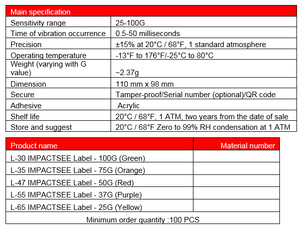 ImpactSee The shock tag and accompanying warning label will alert everyone handling your goods that the product will be
